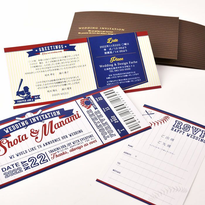 野球好きのおふたりにぴったり!野球の観戦チケットみたいな招待状です。