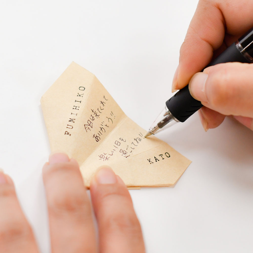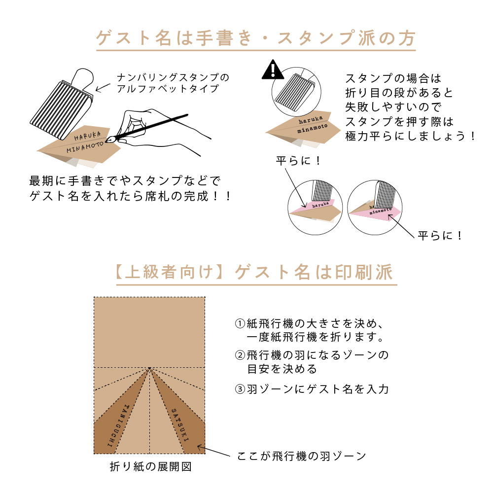 折った後に手書きやスタンプでゲスト名を入れて完成♪