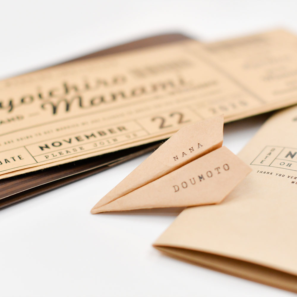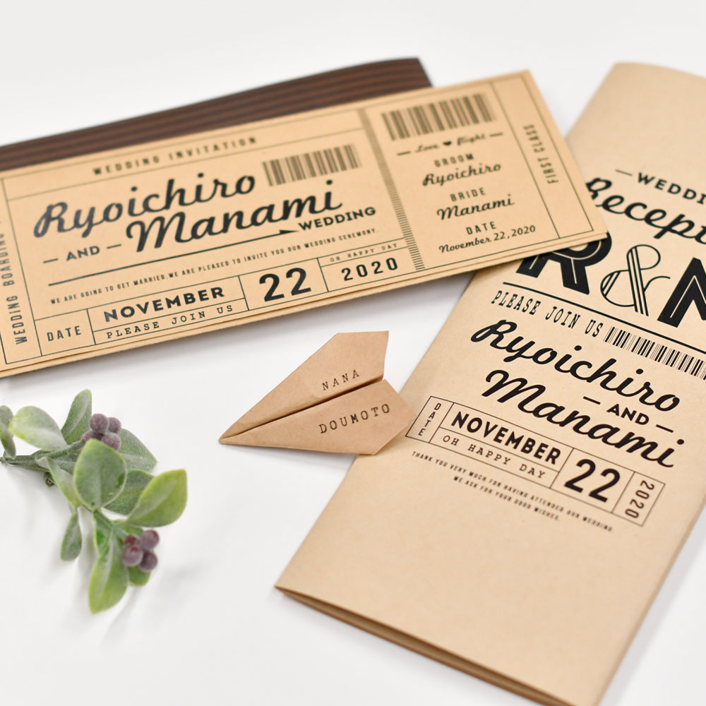 ⇒ボーディングパスチケット風クラフト招待状を詳しく見てみる