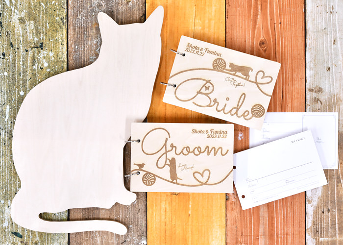 可愛いネコちゃんと、ワンちゃんデザインの受付サイン&芳名帳