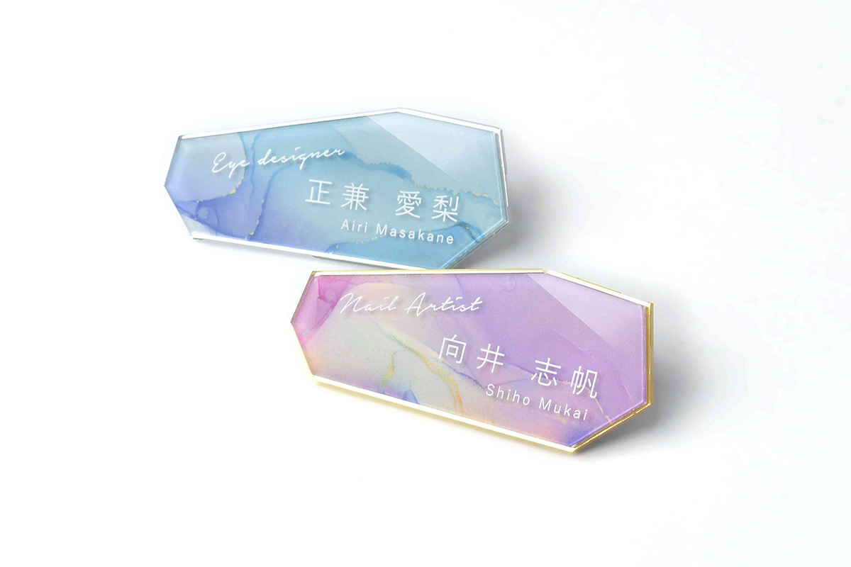 フチから1mm見えるようにゴールドとシルバーのアクリルミラーを重ねて こちらもキラリと光るネームプレートになっています!