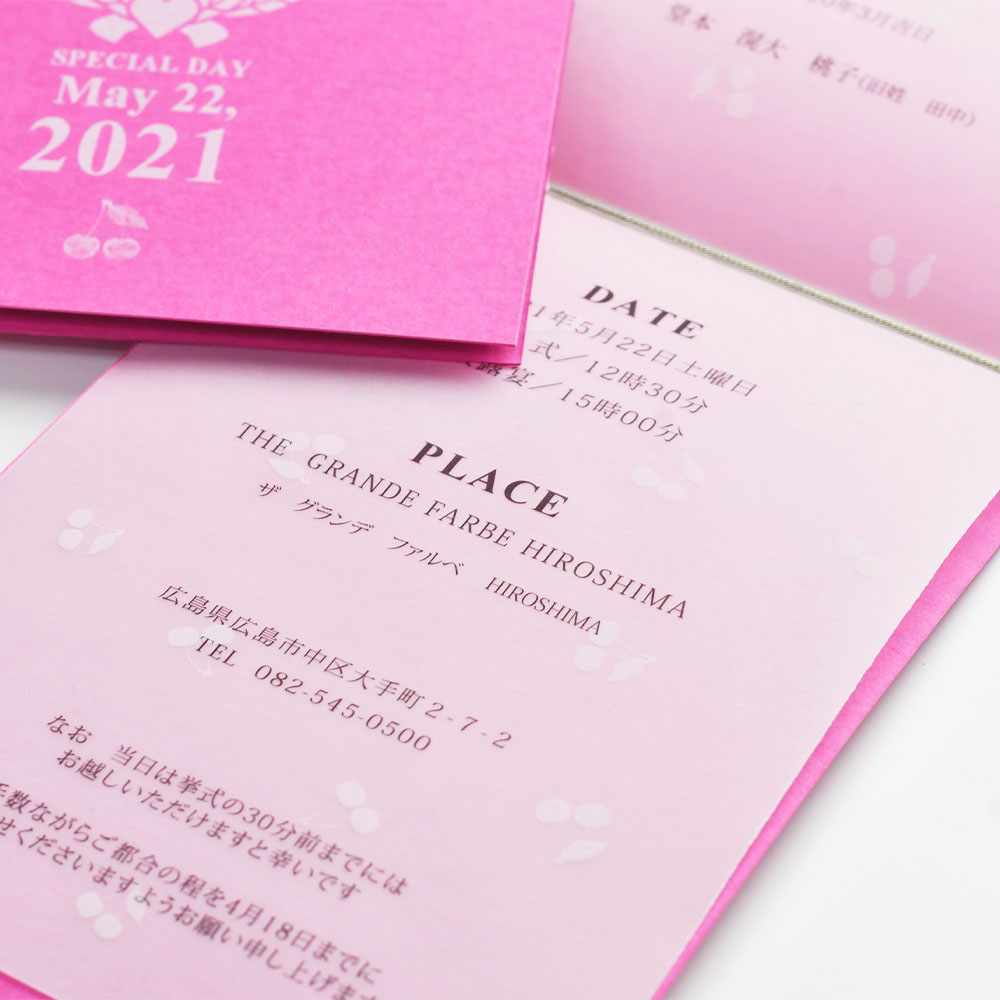 招待状と同じく鮮やかなピンクのに…チェリーがチョコンと乗ってます♪