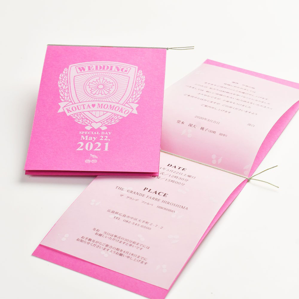 鮮やかなピンクで存在感爆発!警察手帳風「招待状」