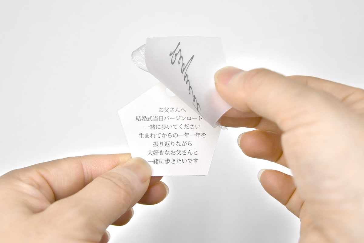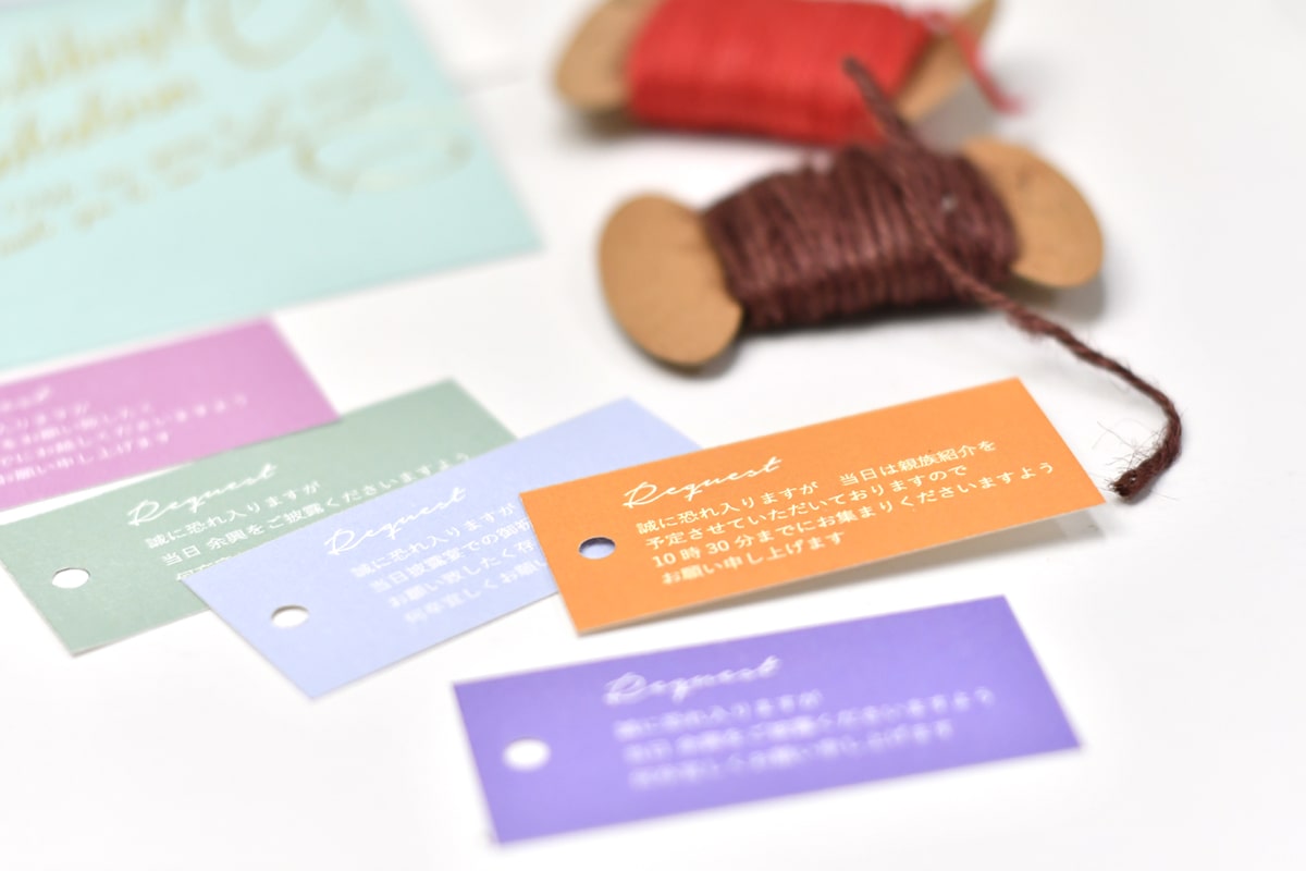結婚式の招待状に同封するアイテムの中の「付箋(ふせん)」のことです。