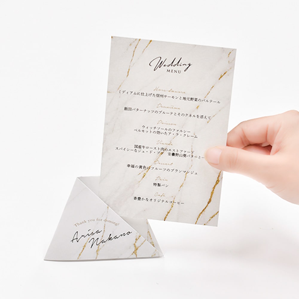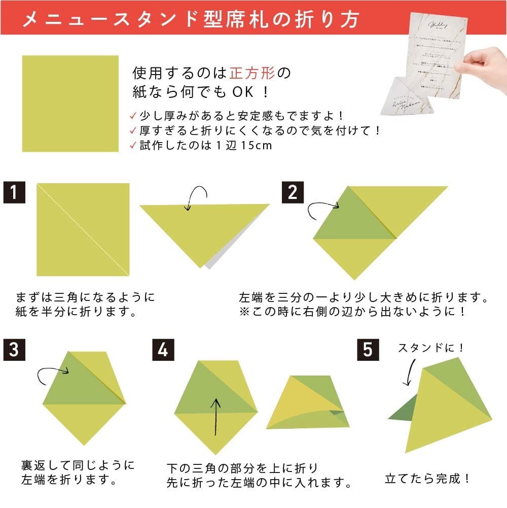 (見本の画像はゲスト名を予め印刷した紙を使用しています。手作りの場合は折ってからゲスト名をご記入くださいね!)