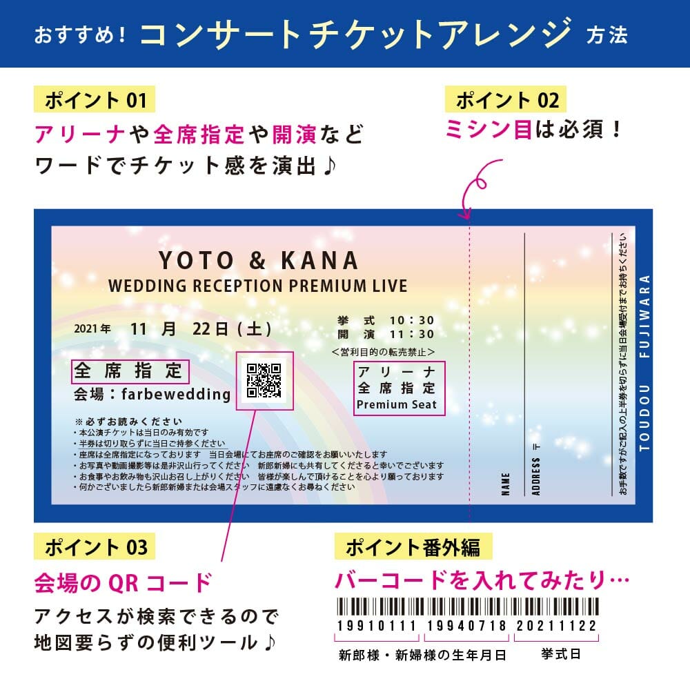 今回ご紹介するのは、虹色カラーを忠実に再現♪あのコンビニのコンサートチケット風招待状!