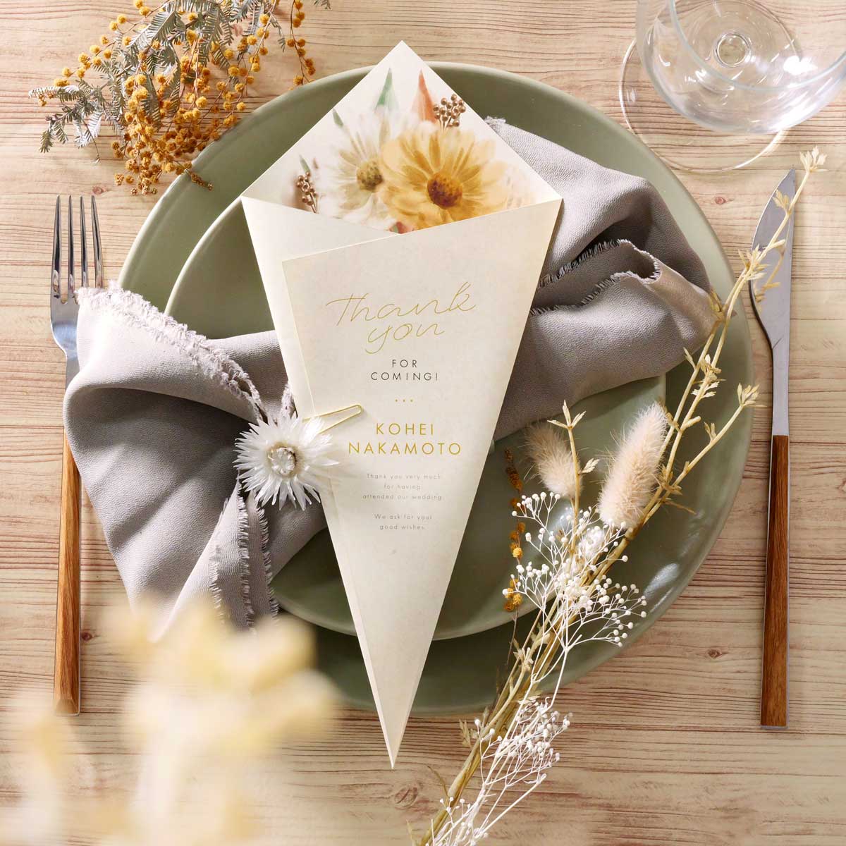 花束の形の席札メニュー表