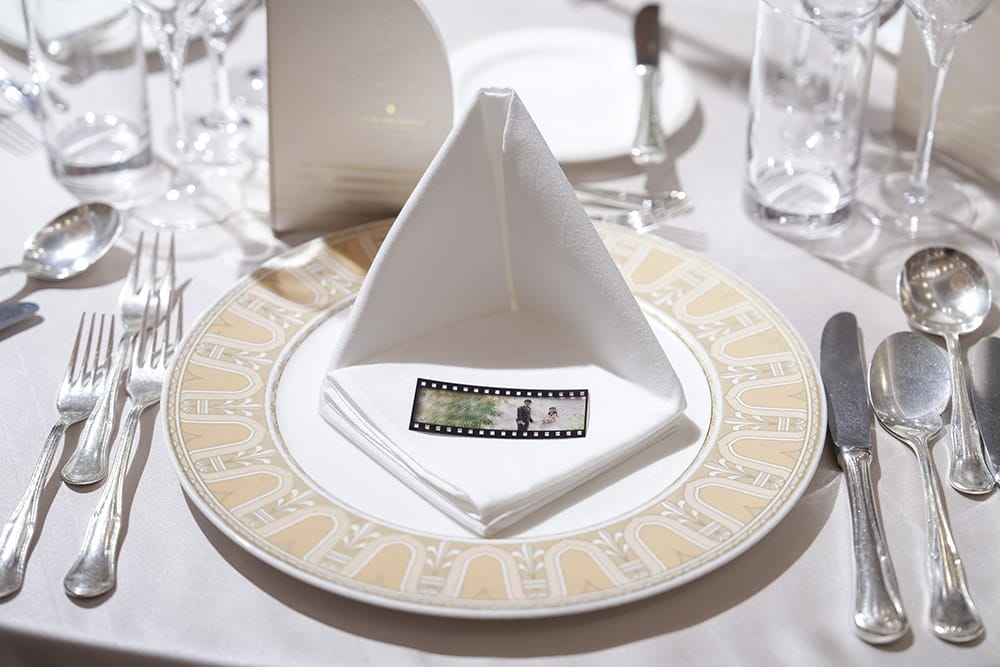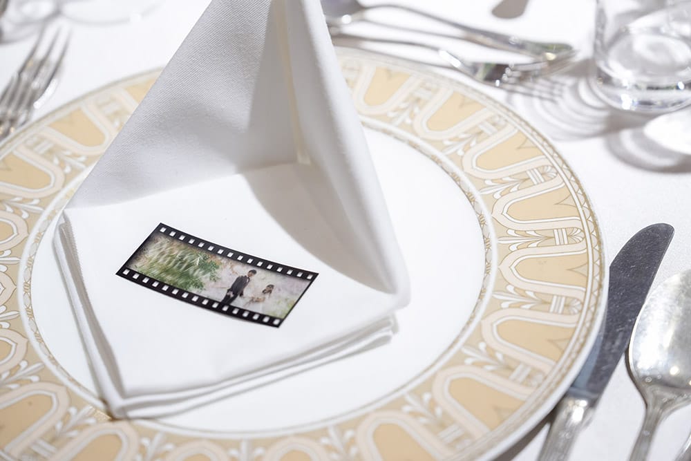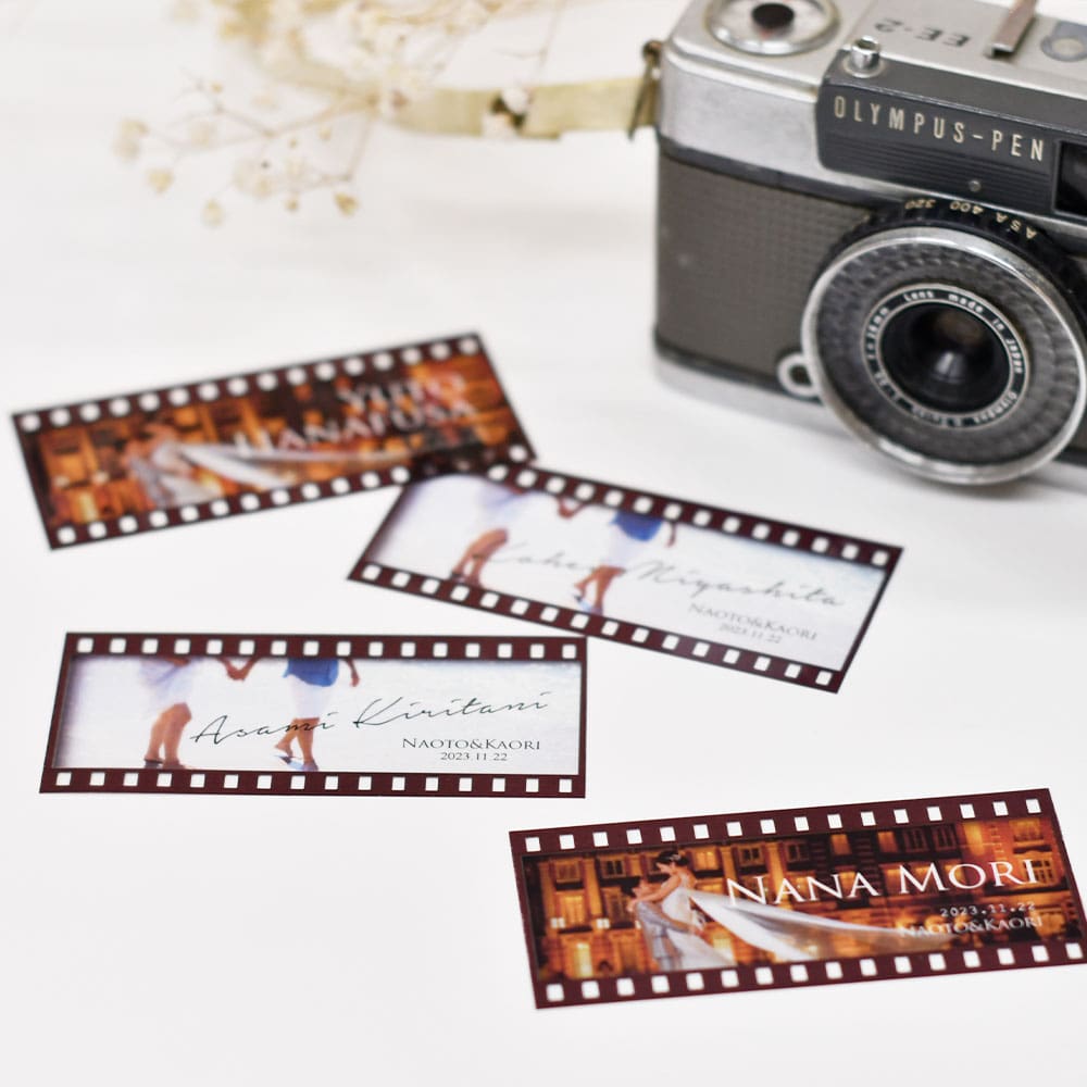 お二人の劇的ワンシーンを切り取ったネガフィルム風席札です。