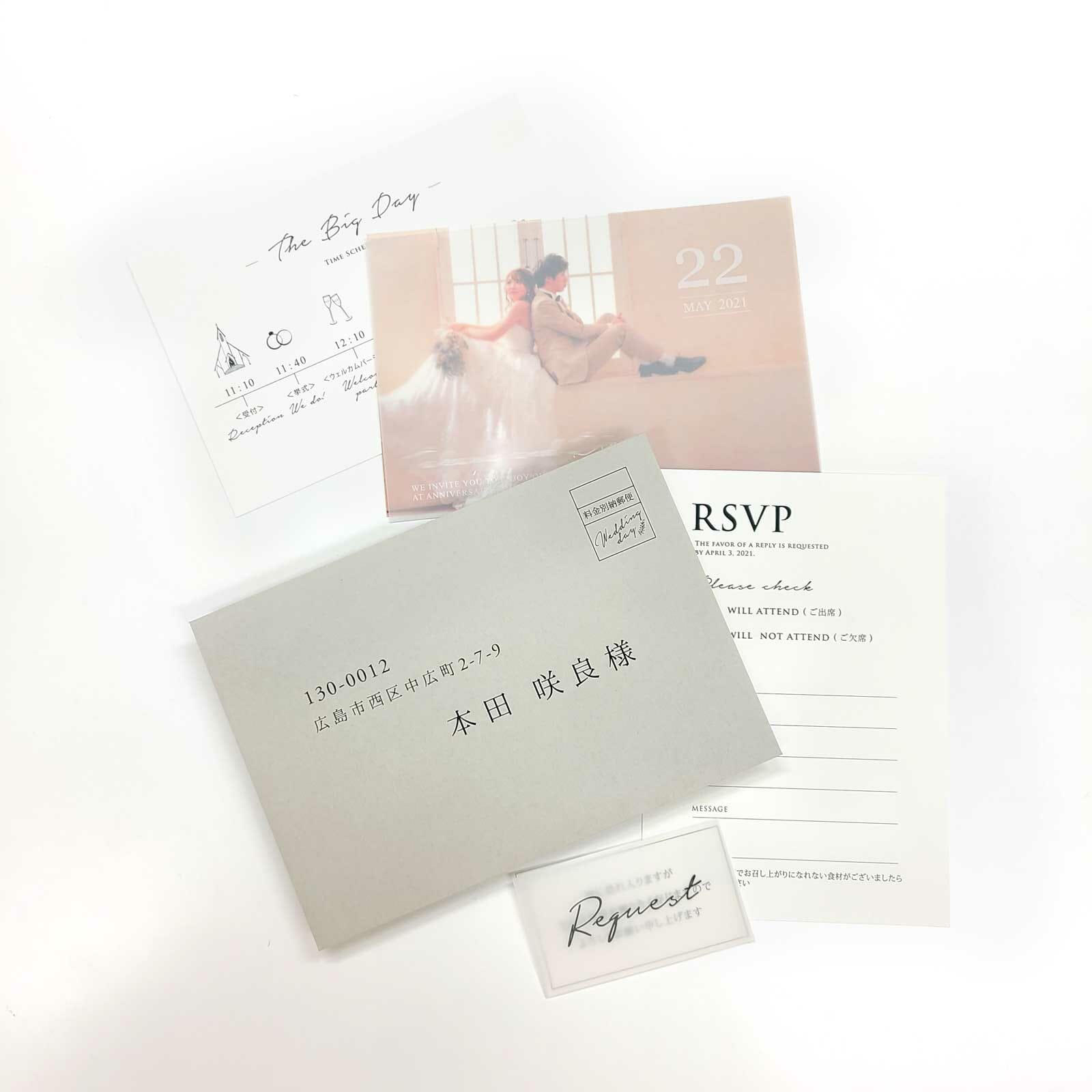招待状の時に写真が入っていると、お二人の事を知っていただけるので返信はがきのメッセージも書きやすいとゲストの方にも好評ですよ♡