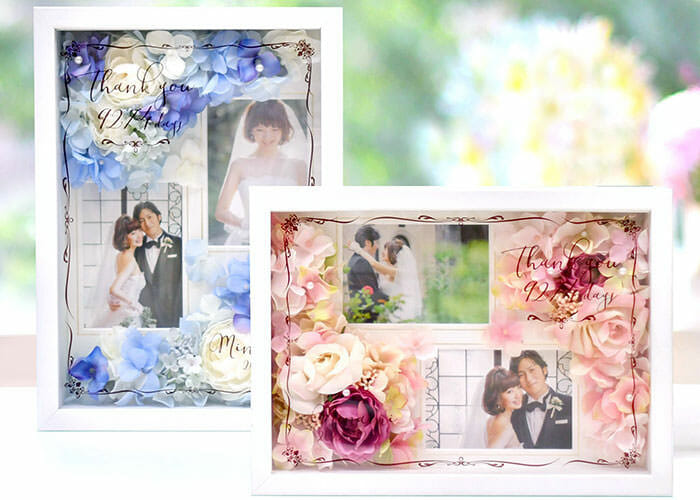 挙式後はお部屋を華やかに飾って見るたびに感動がよみがえるカタチに残る贈り物になります。