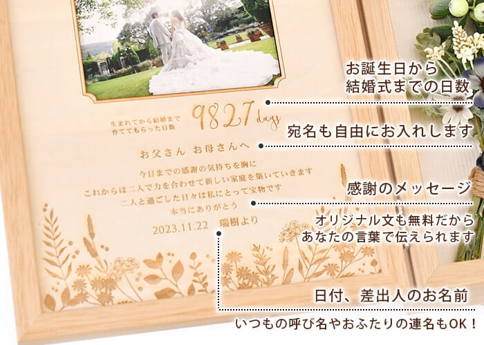 メッセージはあとでお写真に差し替え可能なので贈った後は、フォトフレームとしてお使いいただけます。