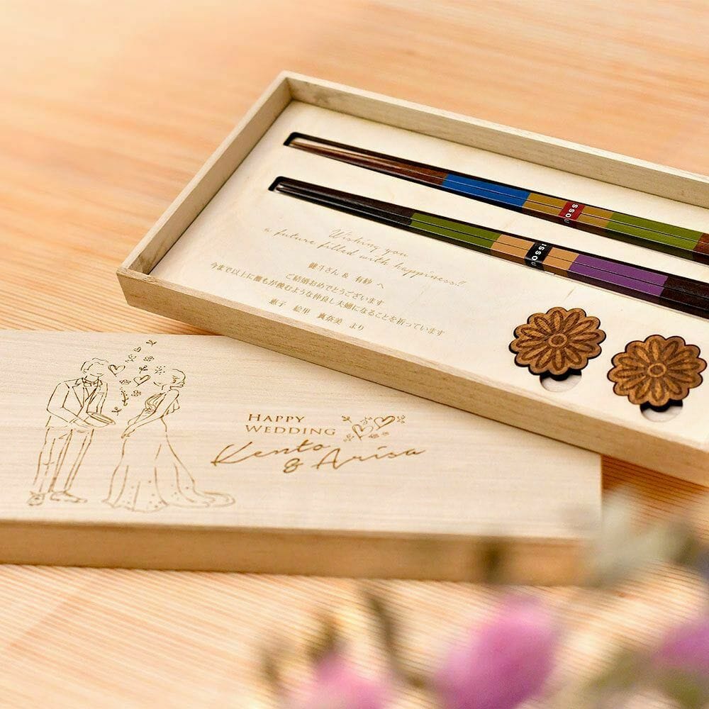 【結婚お祝いギフトセット】ペア夫婦箸&箸置き<HAPPYWEDDING>洋装デザイン