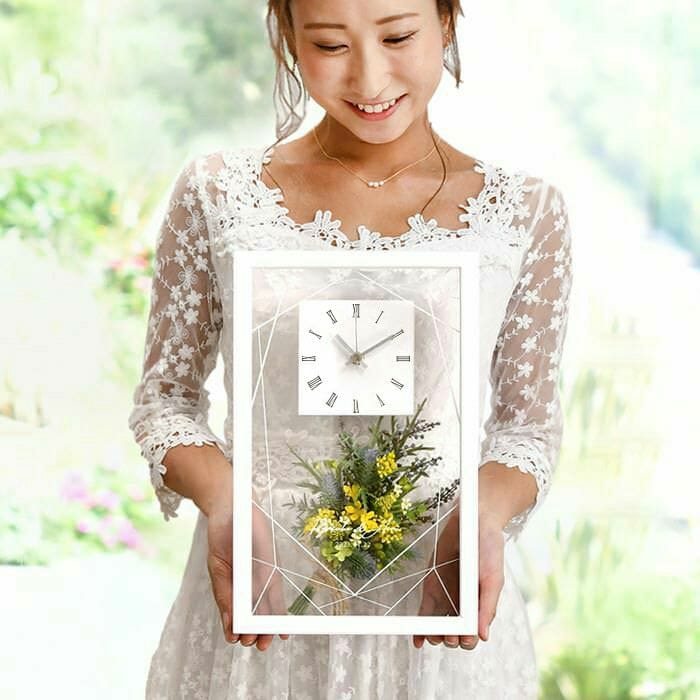 幸せな花言葉をもつお花を咲かせたガラスの結婚証明書に