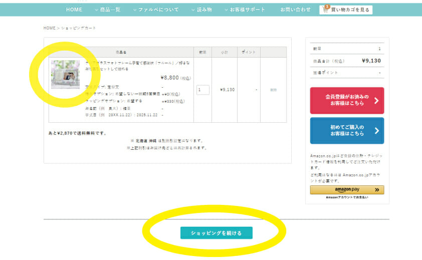 【 ショッピングを続ける 】の表示があるので、こちらをポチっ!