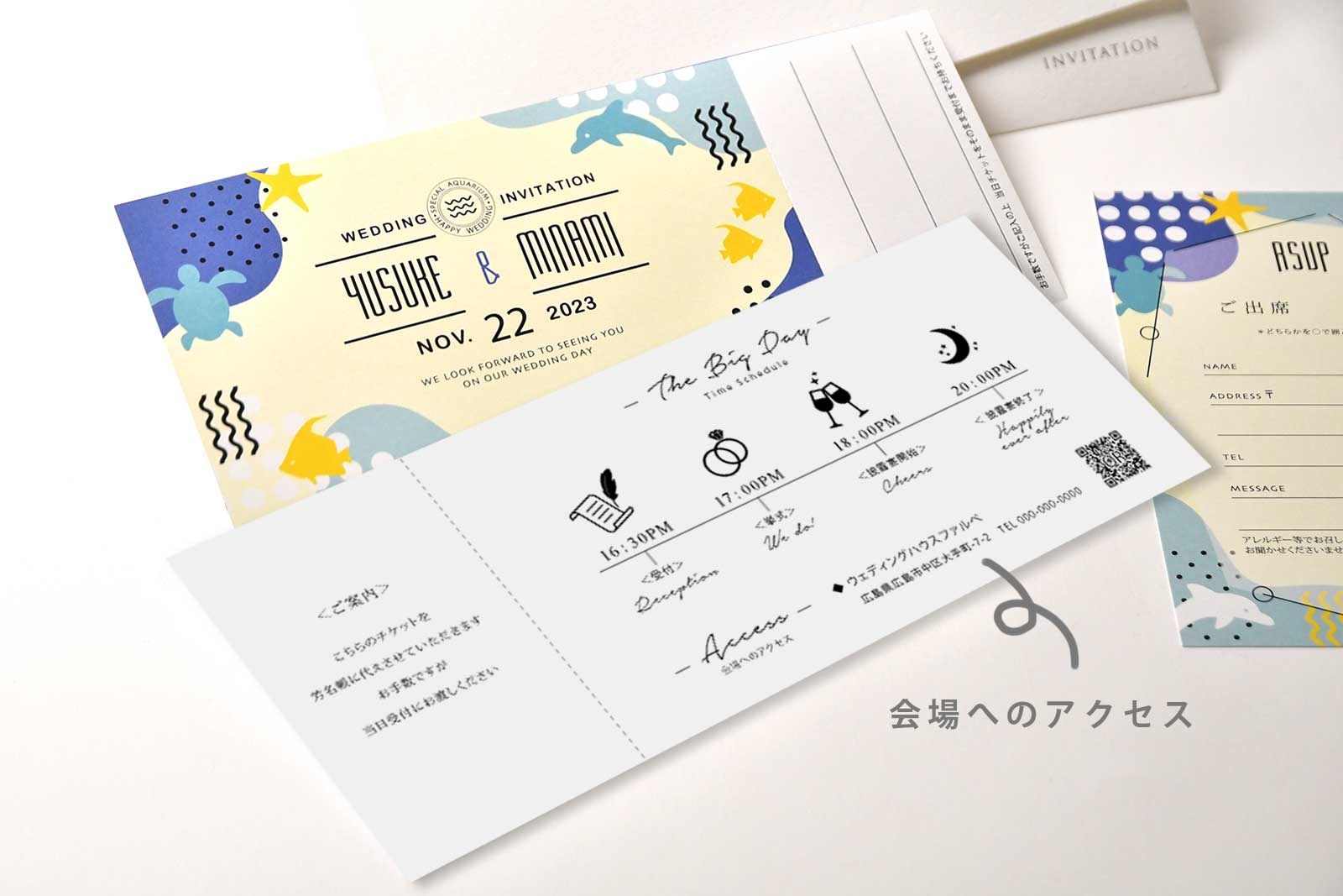 招待状チケットタイプの裏面を使ってタイムラインを載せるというのも良いですね。