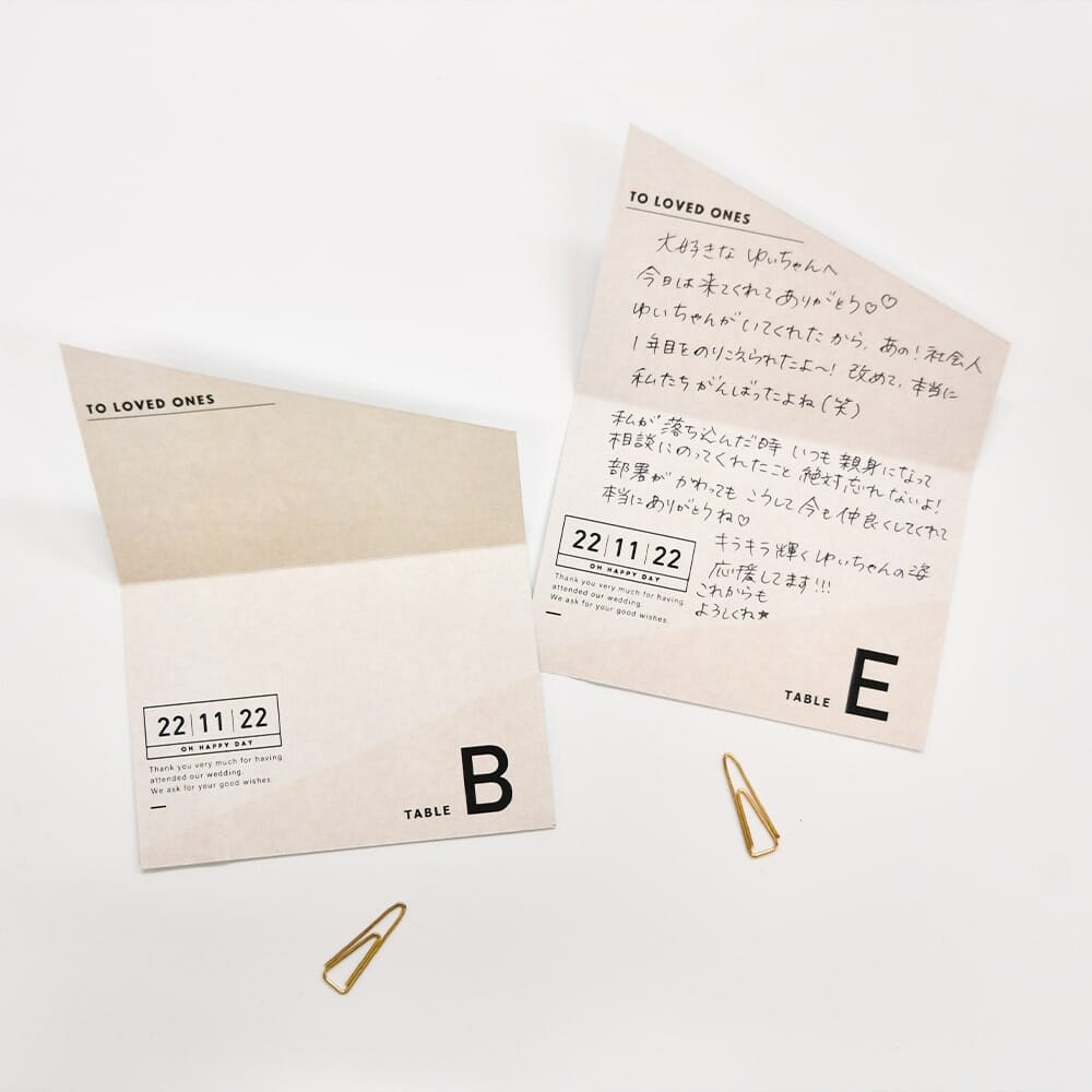 「席札」の裏に書く一言メッセージや「ウォールレター」とは、ちょっぴり違った演出を加えたお手紙なんです(*^-^*)
