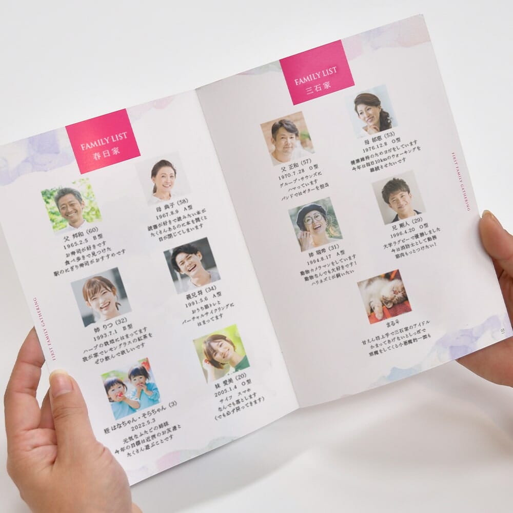 そして、見開きでどどーんと紹介するは両家のご家族プロフィール