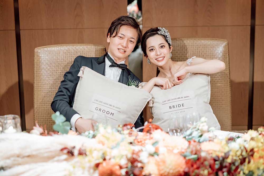 シンプルでオシャレですよね!!席札をクッションにするというアイデアは初めて拝見したので、少人数婚のおもてなしアイデアとして、とっても素敵だなと思いました!お二人のセンスの良さを感じます!(^^)!