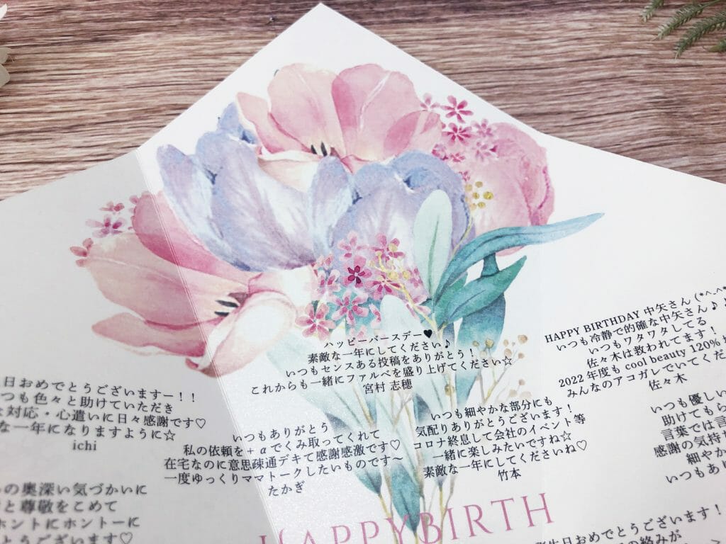 社内で誕生日をお祝いしたい!と思って作りましたが、やっぱり言葉にするっていいですね💓