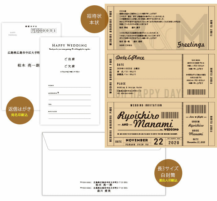 飛行機の搭乗券をイメージした招待状。
