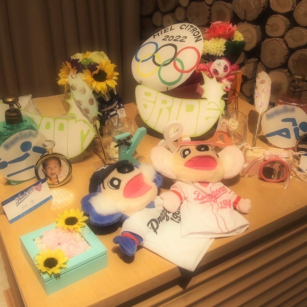 当日、式場の控え室にあのユニフォームを飾っていたようで、ゲストの皆様もユニフォームとまるで一緒!?の席次表を手に取って、おふたりらしいね♡と喜んでくださったそうです(*^-^*)