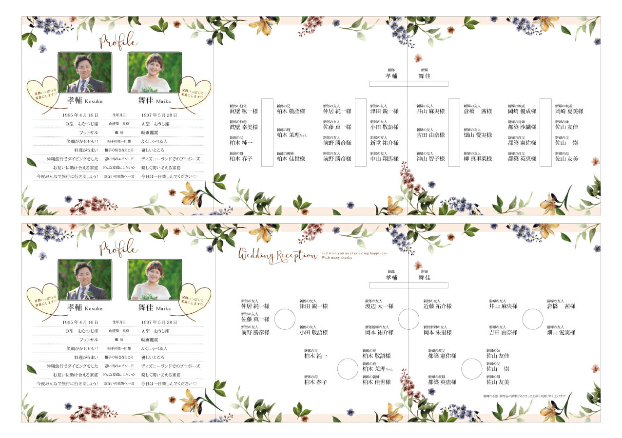 挨拶文や新居案内、メニューも入れることが可能な席次表なんです!