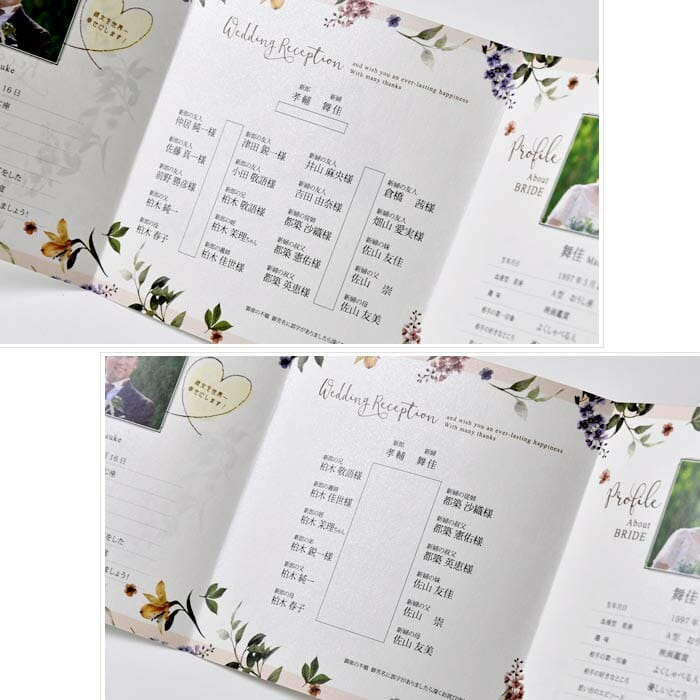 プロフィール部分 → 新郎様&新婦様で1ページにまとめる