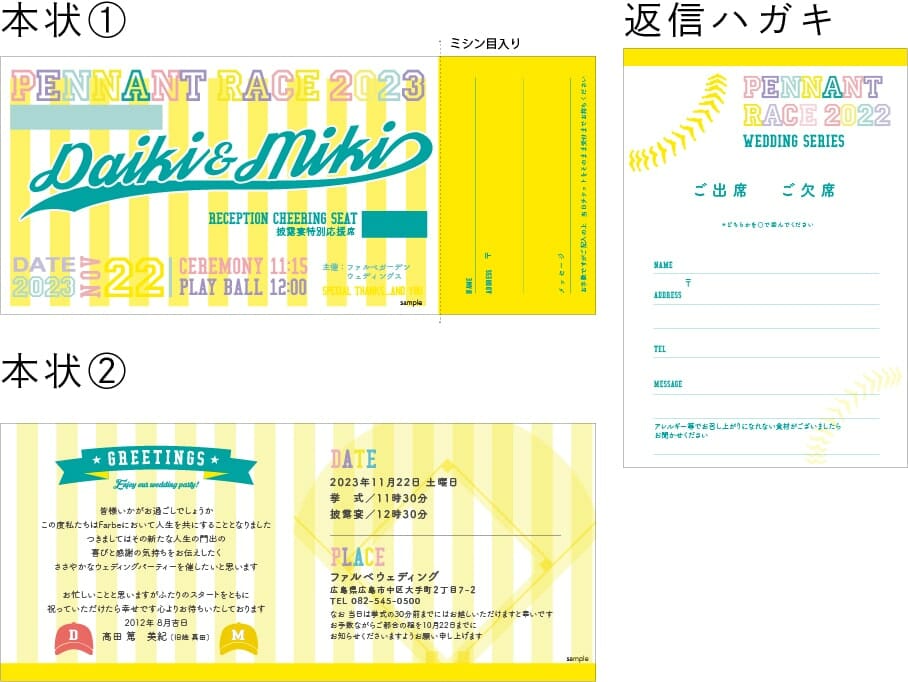 招待状は本状2枚と返信用ハガキをアレンジしました。