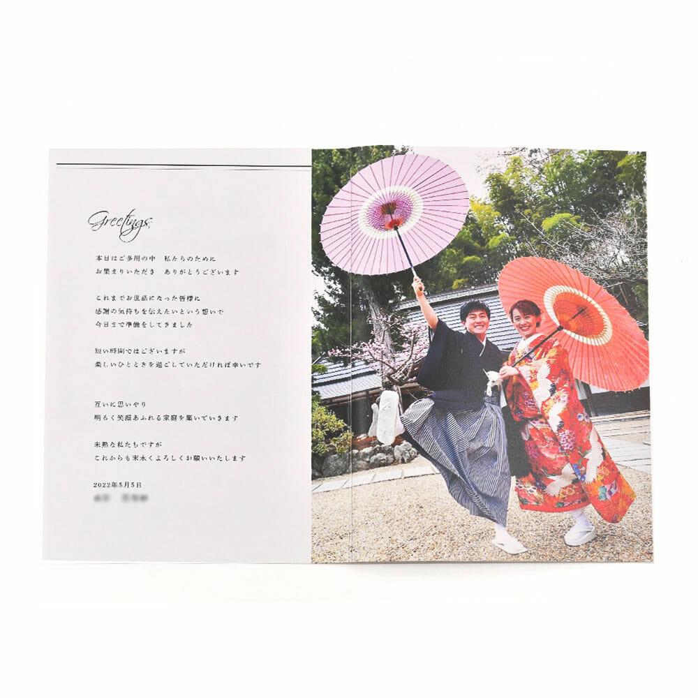 気になるのは席次面なんですが、最近ではN様のように見開きで綴じられる方が多くなっております。