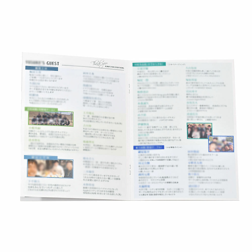 中綴じタイプは、中央のテーブルにどうしてもホチキスの芯がかぶる場合があるのですが、気になる方はテーブルナンバーを記載せずお作りすることもできます。まずはご相談ください♪