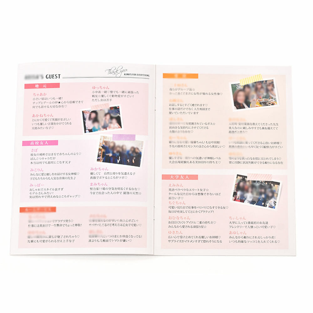なぜなら、ページ数を最大16ページまで増やせるから!!だから今回のプロフィールブックには、もちろん席次表や