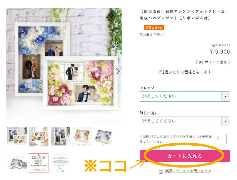 通常、ピンク色の「カートに入れる」ボタンの部分が