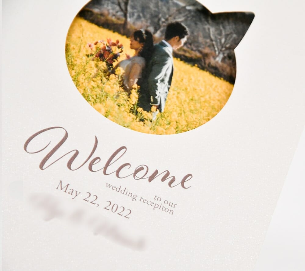 前撮りもたくさん撮ったので、そちらを活かした形にできないかと今回のデザインに行き着きました。