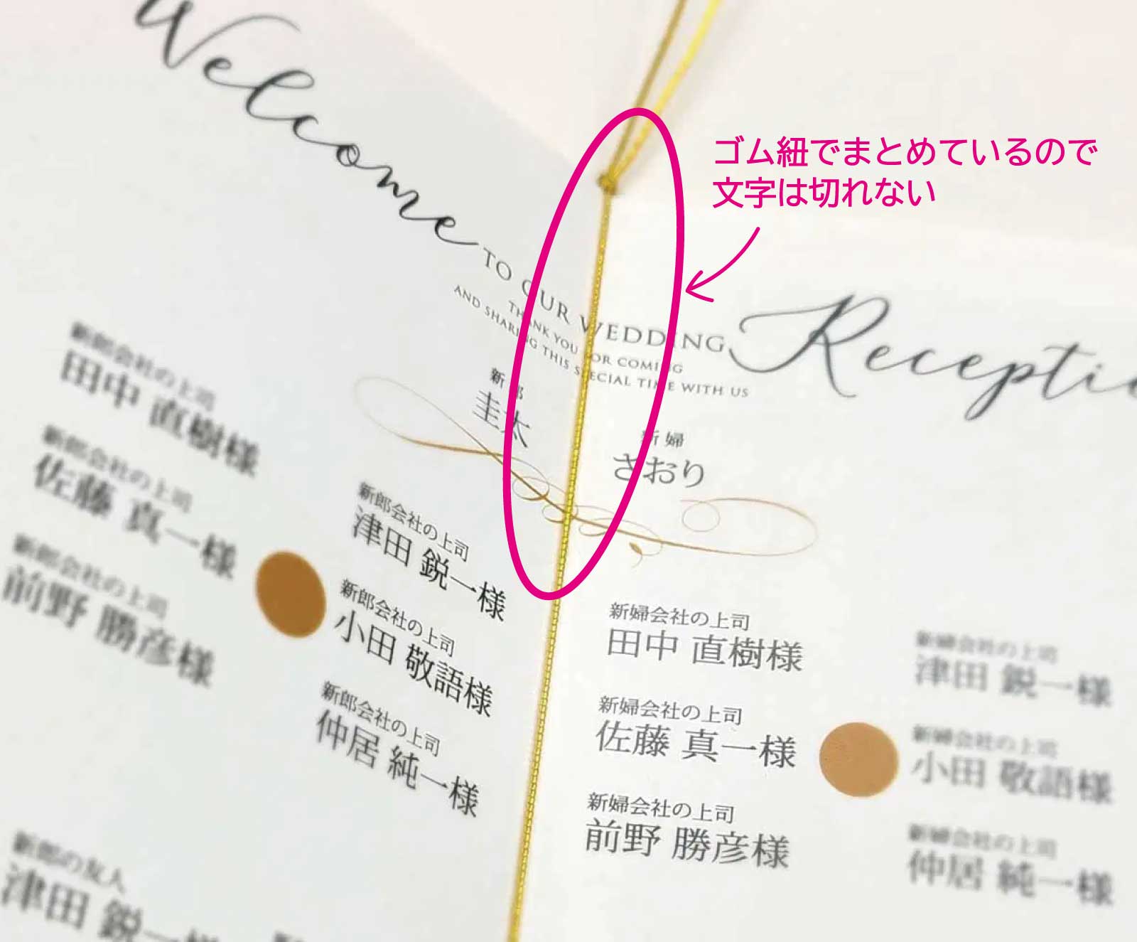 そんな時は1枚の用紙が繋がっている見開きのページを席次表にしていただく事をおススメします!