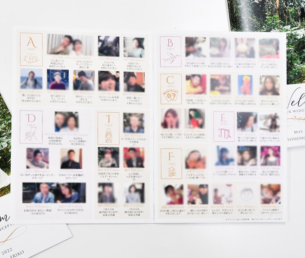 結婚式が終わった後もゲストの皆様、何度も読み返したと声を聞けました!こんな友達がいるんだな、親族はこんな人達なんだなと、相関図が分かって面白いなど…。当日は新郎新婦以外マスクしている分、写真付きなのも良かったです