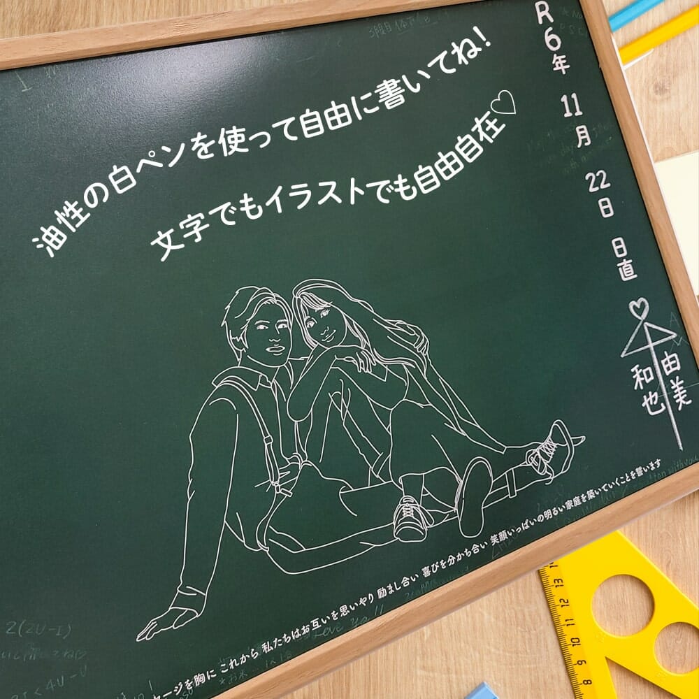 お二人とも学校の先生ということで、黒板風にしてみました☆彡