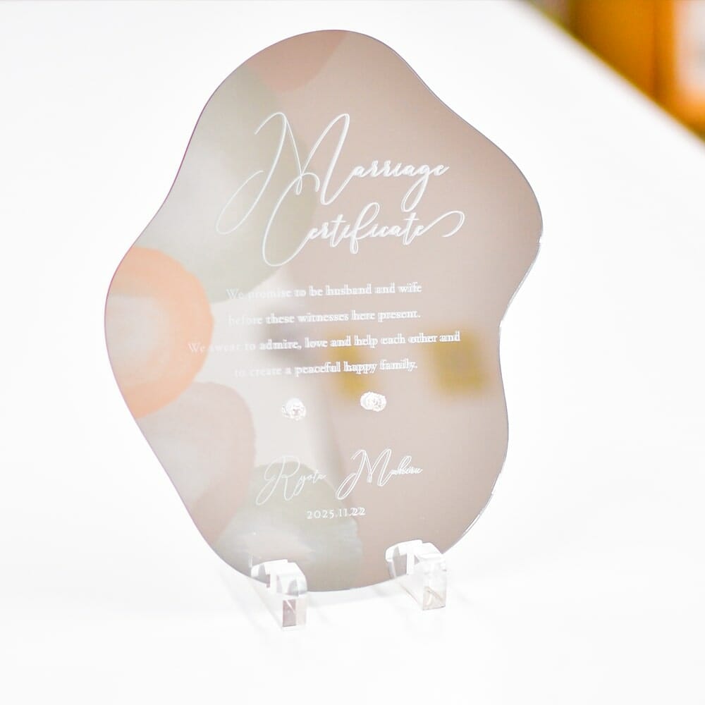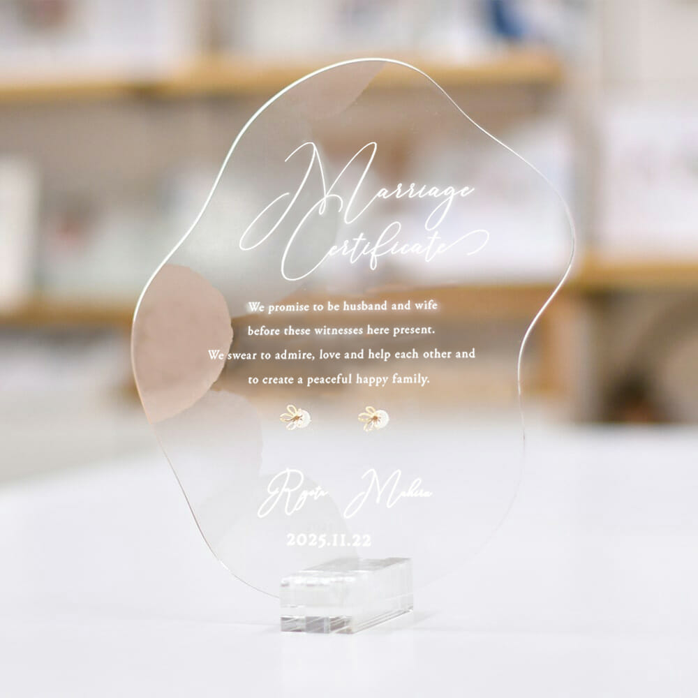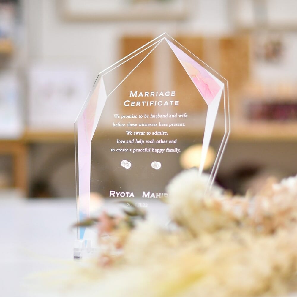 例えば… ユニークで個性的!アクリル「結婚証明書」を大胆アレンジ
