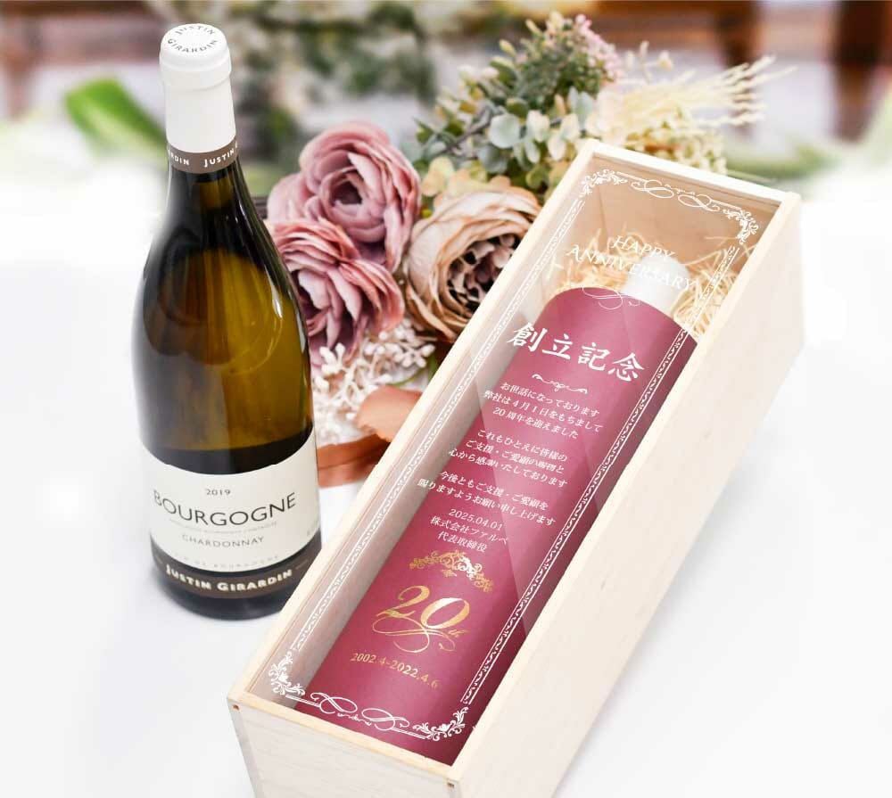 今回は企業様の周年記念シーンを彩る木箱入りのワイン♪