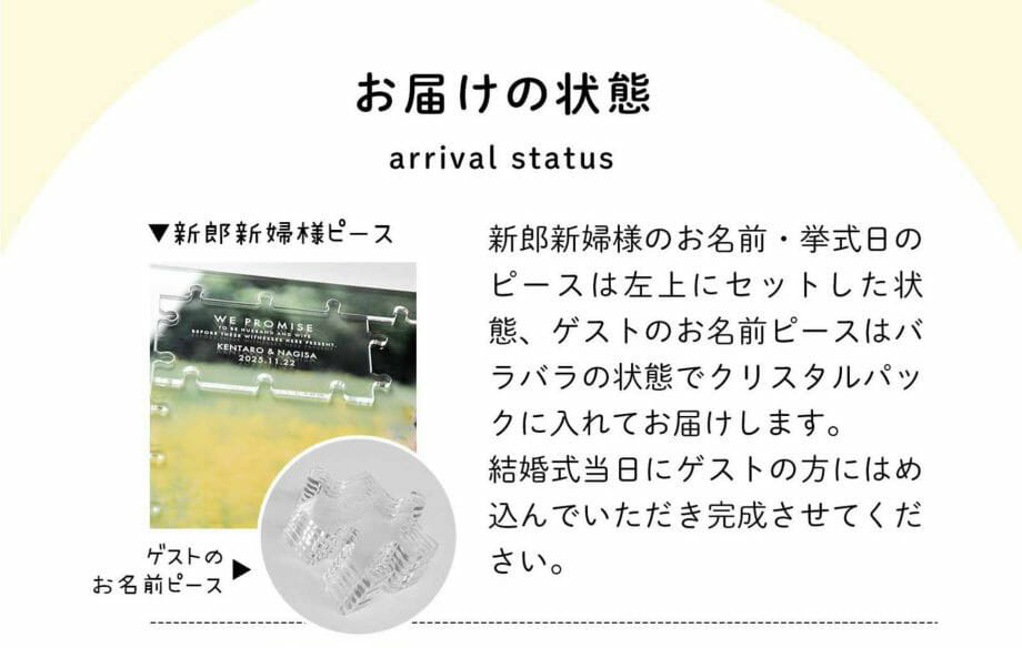 最後に・・・こちらのパズル型結婚証明書の新郎新婦様分のプレートは、最初からセットした状態でお届けします。