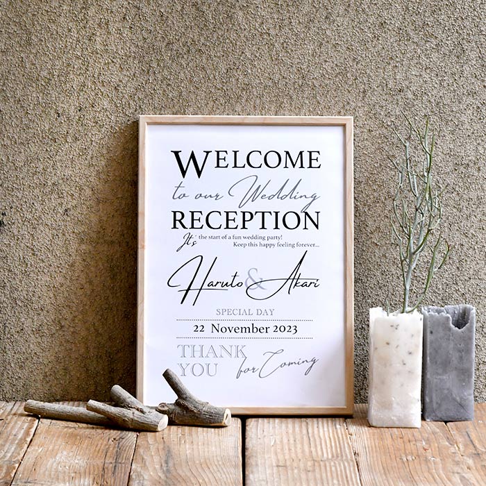 フォントのみで構成された大人っぽいシンプルデザイン。こだわりの”シンプル・イズ・ベスト”を叶える洗練されたアクリルウェルカムボードです。