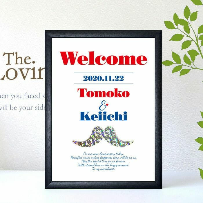お二人のセンスが光るミラータイプのウェルカムボード。8種類のデザイン×2色のフレームカラーを組み合わせを選べます。