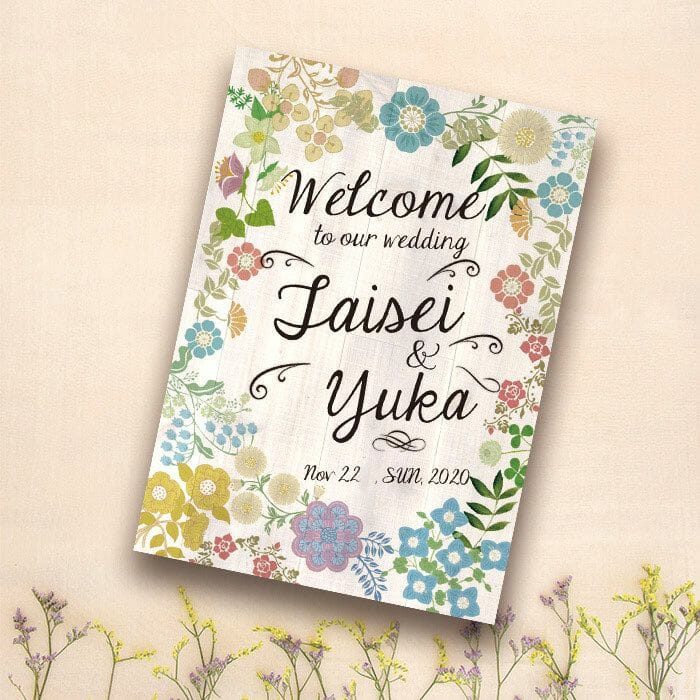 ファルベではウェルカムボードを1からデザインすることもできますし、色を変更、花を変更などちょっとだけ変更することも可能です。自分好みのウェルカムボードをぜひ手に入れて!