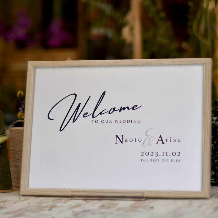 大人ナチュラルなウェルカムボードでスタイリッシュにお出迎え。可憐×清楚な大人ナチュラル。