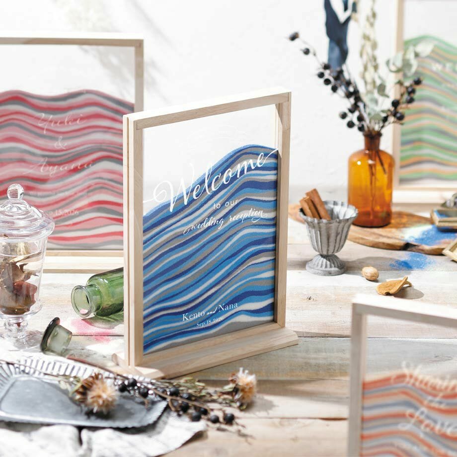 ゲスト参加のサンドセレモニーができるウェルカムサンドアート。サンドを追加すれば最大62名様まで対応できます。