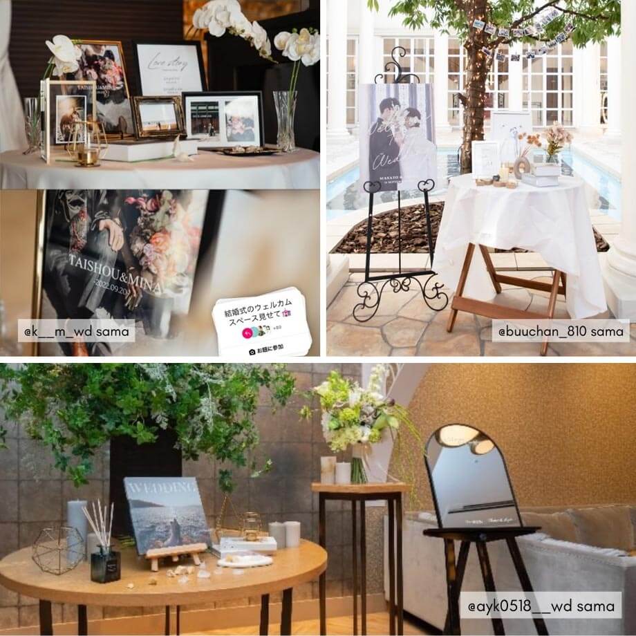 みなさん思い思いのアイテムで二人らしいウェルカムスペースを演出してゲストをお出迎えされています。