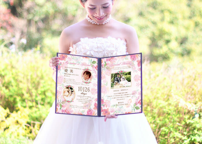 当日は前撮りの写真を入れて華やかに贈れます♡