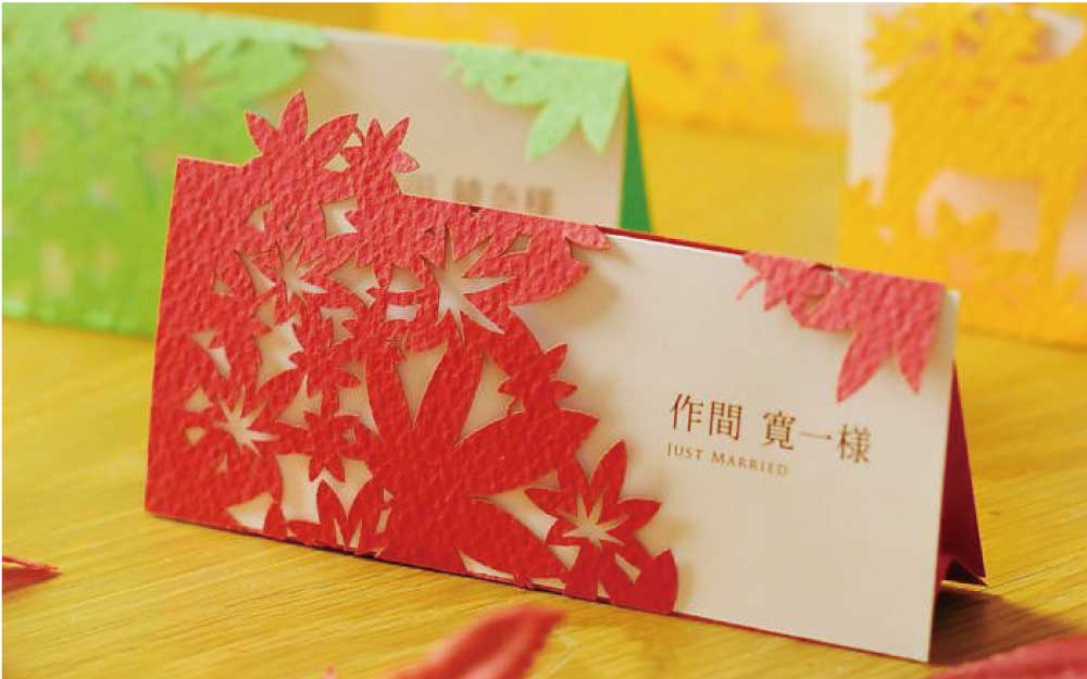 こちらはファルベで販売している紅葉のカットデザイン席札を