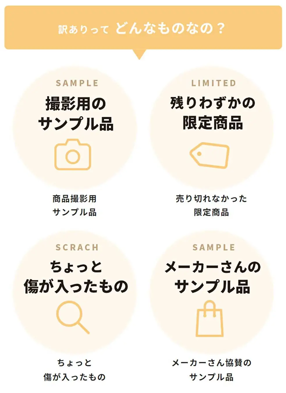 ちょっぴり訳ありのアイテムを、お求めやすい価格で提供させていただく