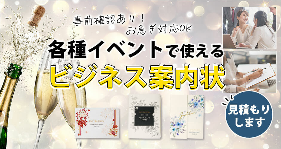 企業様のパーティーや記念式典、イベント等の招待状も対応できます。