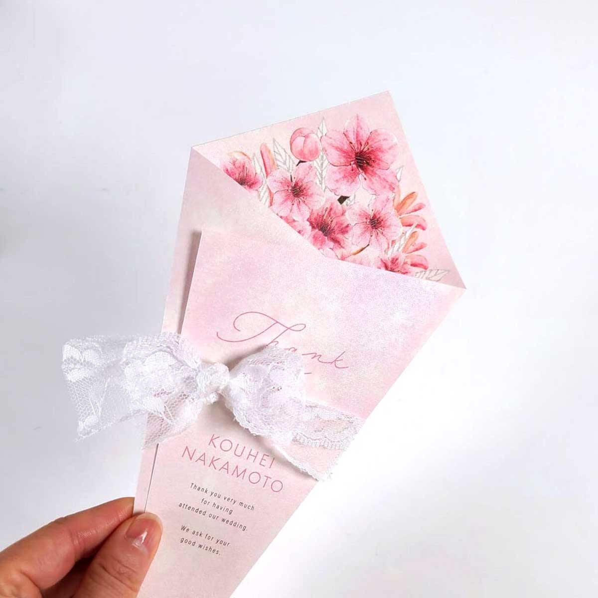 桜のデザインはピンクで可愛いので 今回はレースのリボンで結んでみました。